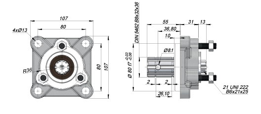 KZL EVSAT 03 имеет крепление на 4 отверстия диаметром 13 мм. Межосевое расстояние между отверстиями 80х80 мм. Ширина корпуса – 99 мм. Высота корпуса – 107 мм.