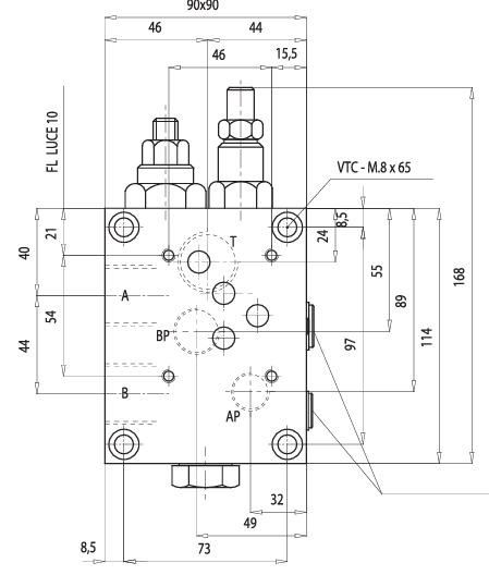 Разгрузочный клапан для сдвоенных насосов VABP FL 10 имеет следующие присоединительные размеры: