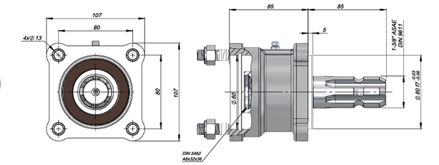 Переходник KZL EVSAT 104 турецкого производства Kazel есть переходником насоса ISO. Он требуется для соединения коробки отбора мощности с выходом стандарта ISO (A8x32x36).
