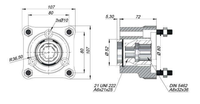Адаптер KZL EVSAT 06 турецького виробництва Kazel є перехідником насоса DIN на коробку UNI KAZL KZL EVSAT 06. Він потрібний для з'єднання коробки відбору потужності з виходом стандарту UNI (A8x32x36 - A6x21x25).