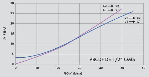 Клапан VBCDF 1/2" DE OMS має корпус із оцинкованої сталі. Внутрішні компоненти з загартованої сталі. Ущільнення - BUNA N standart. Максимальний тиск - 350 Бар. Максимальна пропускна здатність - 50 л/хв.