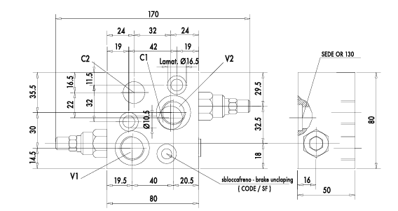 Гальмівний клапан VBCDF 1/2" DE OMS від Oleodinamica Marchesini є клапаном для гідромоторів DANFOSS серії OMS. Застосовується для керування рухом і блокування гідромотору в обох напрямках. Здійснює плавне контрольоване опускання вантажу. Не допускає кавітації мотору.