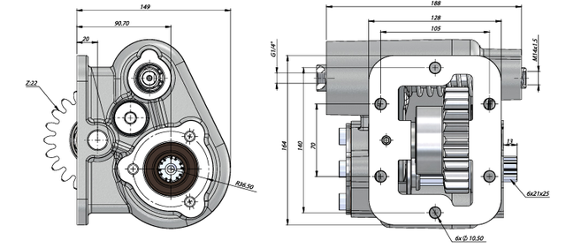 Технічні характеристики PTO KMZ UNI LEFT для гідросистеми