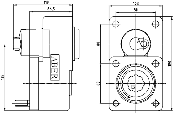 Коробка відбору потужності TF4001AMP від португальського виробника Aber застосовується для передачі потужності обертового моменту від двигуна автомобіля до гідронасоса. Застосовується на вантажiвках з коробкою ZF S5-35.